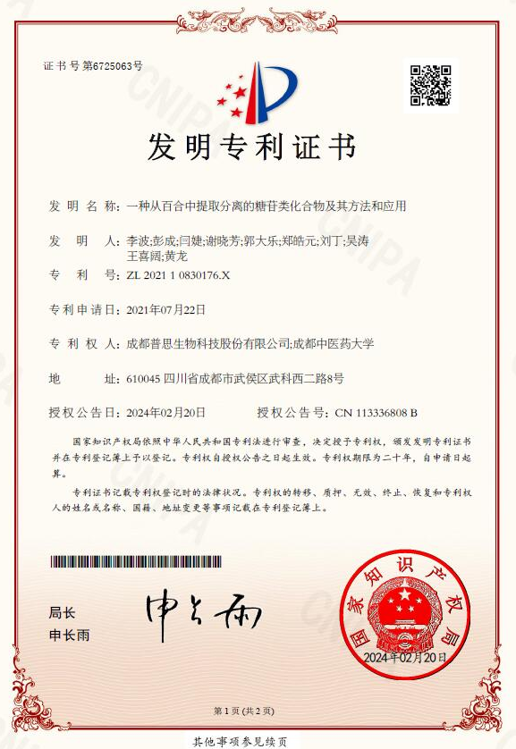 2019年 普思作為主要完成單位之一申報(bào)的“基于構(gòu)效關(guān)系的中藥活性物質(zhì)發(fā)現(xiàn)及其開(kāi)發(fā)應(yīng)用”項(xiàng)目,榮獲四川省科學(xué)技術(shù)廳科技進(jìn)步一等獎(jiǎng)。